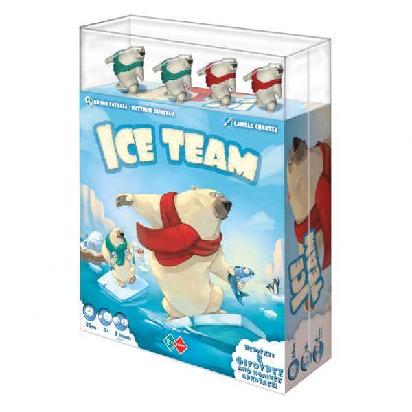 Περιεχόμενα: – 1 Ταμπλό Εκκίνησης – 1 Ταμπλό Τερματισμού (το Χωριό) – 4 Ταμπλό Διαδρομής – 24 Παγονησίδες – 8 ψηφίδες Ιγκλού (τοποθετήστε τα 8 διαθέσιμα αυτοκόλλητα στα αντίστοιχα σημεία που βρίσκονται τα Ιγκλού) – 8 μινιατούρες Πολικές Αρκούδες (4 με πράσινο κασκόλ και 4 με κόκκινο κασκόλ) – 30 Μάρκες Ψαράκια διπλής όψης, με τη μία πλευρά να δείχνει “Ψαράκι Φρέσκο” και την άλλη πλευρά να δείχνει “Ψαράκι Κατεψυγμένο” (20 με 1 Ψαράκι, 12 με 2 Ψαράκια και 8 με 3 Ψαράκια) – 2 Ζάρια